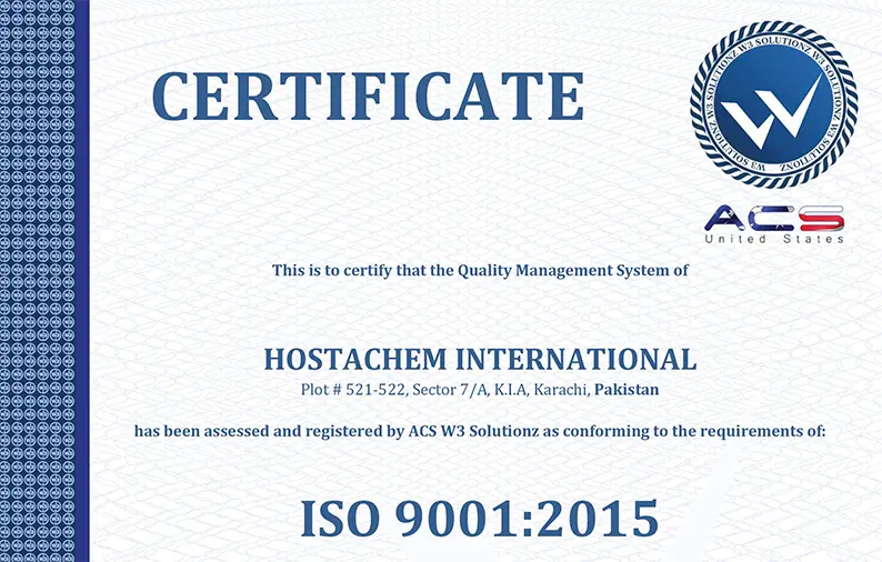 At Hostachem, our commitment to quality, environmental responsibility, and occupational safety is at the core of everything we do. We believe that maintaining the highest standards in these areas is crucial to delivering superior products and services to our clients around the world